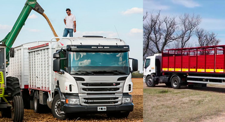 Camiones cerealeros, ganaderos y carretones.